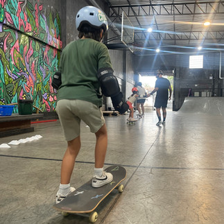 O skate desenvolve equilíbrio, coordenação, consciência corporal e confiança nas crianças. Nos adultos, melhora mobilidade, foco e controle do corpo. No coletivo, fortalece vínculo, respeito ao ritmo individual e convivência.